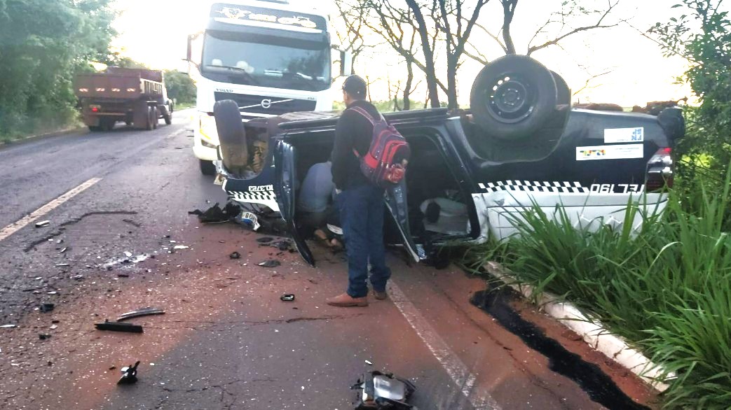 Acidente envolvendo uma viatura da Polícia Militar na rodovia Iguatemi/Eldorado, provocou a morte de um cabo e ferimentos generalizados em um sargento. Viatura e militares seriam do Pelotão de Iguatemi.