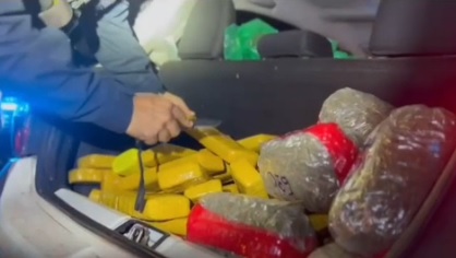 Foi feita, então, a abordagem pessoal e questionado o porquê da fuga, o suspeito afirmou que é ameaçado de morte por facção criminosa e achou que poderia estar sendo vítima de criminosos. Não foi localizada em posse do suspeito a sacola, sendo possível que tenha se desfeito dela durante a perseguição.
