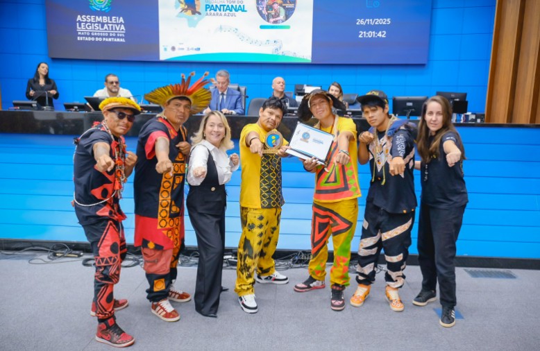 O grupo Brô MC’s, referência nacional e internacional no rap indígena, recebeu a Comenda Tom do Pantanal Arara Azul durante a Sessão Solene do Dia do Músico na Assembleia Legislativa. A homenagem, concedida por indicação da deputada estadual Lia Nogueira (PSDB), reconheceu a trajetória pioneira dos artistas que transformaram a música em instrumento de identidade, resistência e afirmação cultural.