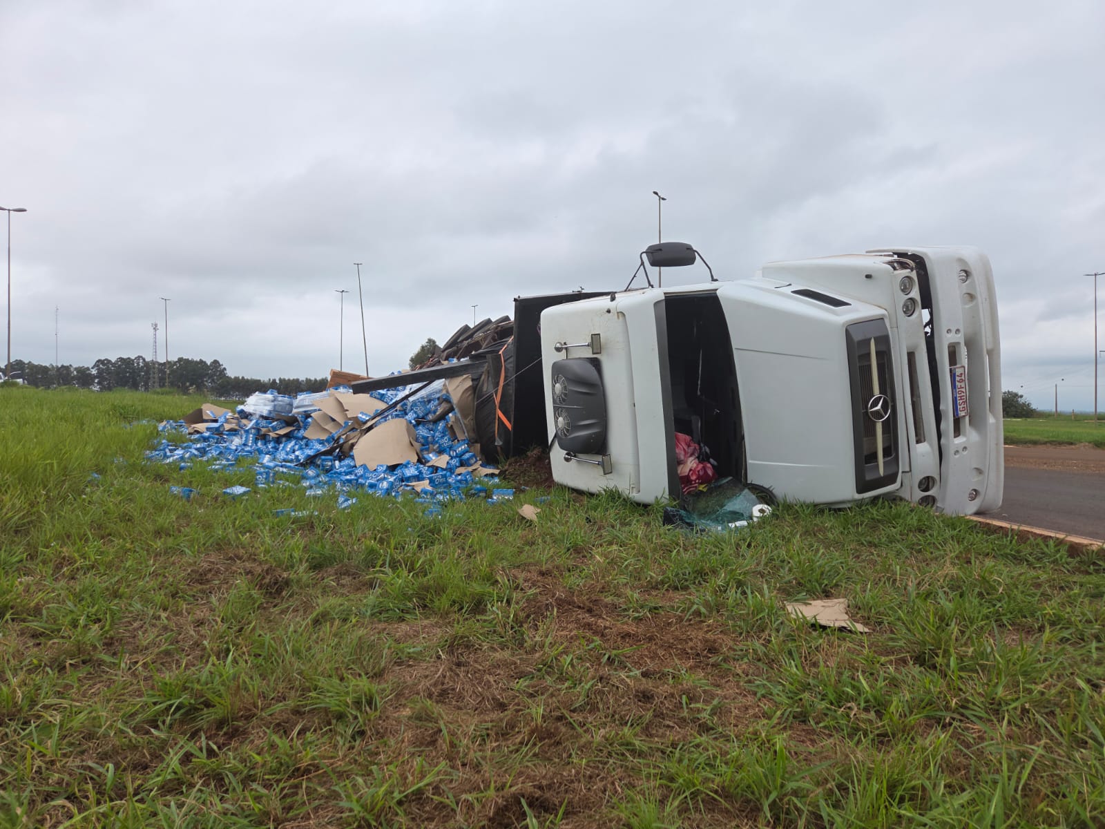 Um acidente registrado por volta do meio-dia desta terça-feira (28) causou transtornos na BR-463, no trecho entre Dourados e Ponta Porã. Uma carreta carregada de cerveja tombou às margens da rodovia, mobilizando equipes de resgate e a Polícia Rodoviária Federal (PRF).