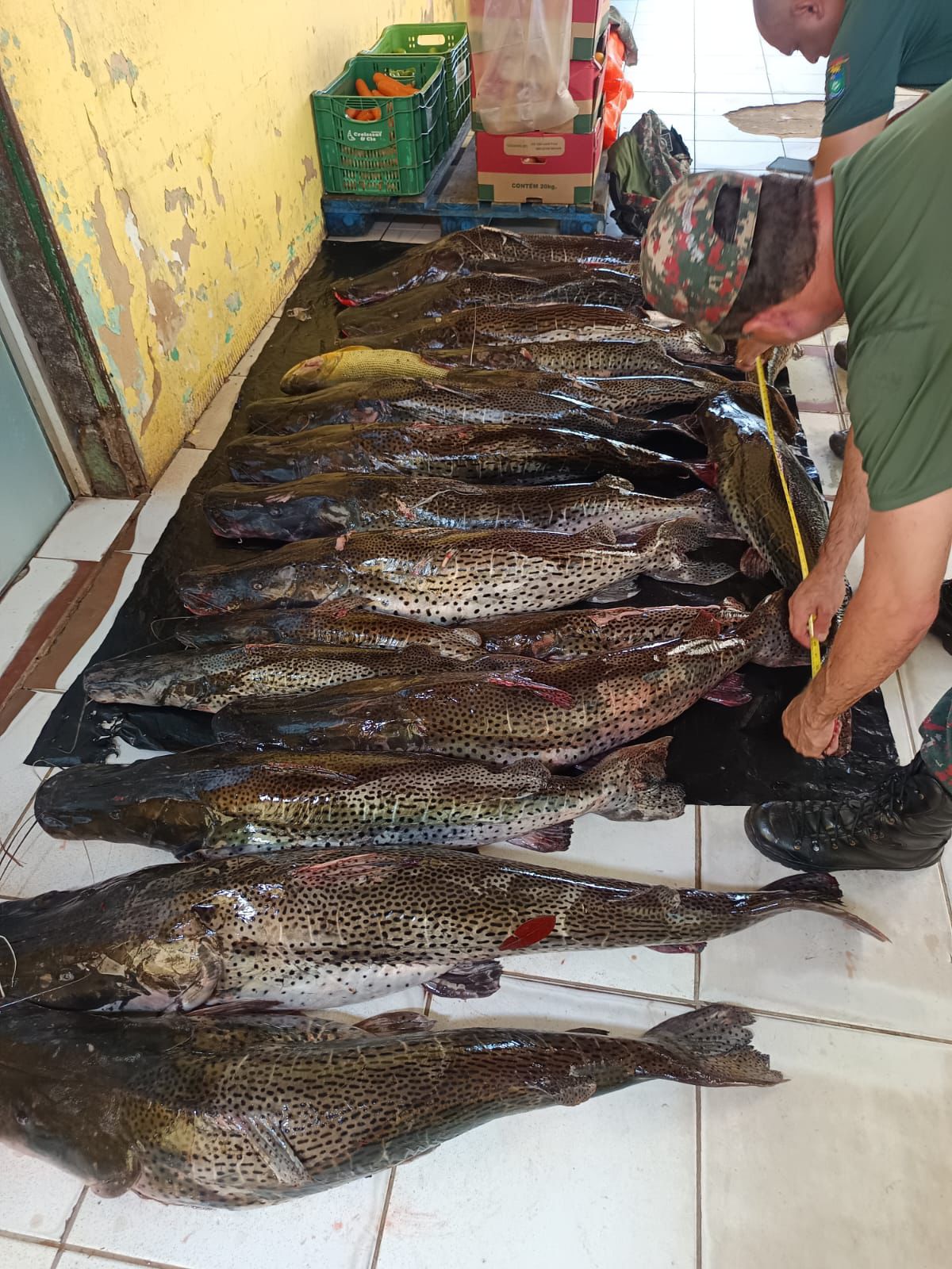 A ofensiva ocorreu após denúncias e teve como principal foco o Rio Verde, onde equipes flagraram quatro homens, com idades de 19, 29, 35 e 60 anos, praticando pesca ilegal na margem esquerda do rio. No local, foram apreendidos 313 quilos de pescado irregular, sendo cerca de 300 quilos de pintado fora do tamanho permitido, além de um exemplar de dourado, espécie cuja captura é proibida por lei.
