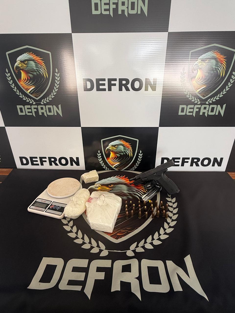 Em buscas no imóvel, os policiais encontraram mais 650 gramas de cocaína, totalizando aproximadamente um quilo do entorpecente apreendido. Também foram localizados uma balança de precisão e uma pistola calibre 9 milímetros, de origem estrangeira, com numeração intacta, além de dois carregadores e 26 munições.