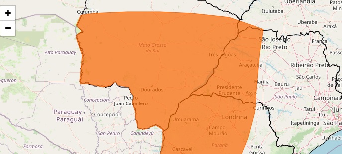 Dourados e outros 78 municípios de Mato Grosso do Sul continuam em alerta para risco de tempestade nesta quinta-feira (19/2), conforme novo aviso emitido pelo Inmet (Instituto Nacional de Meteorologia).