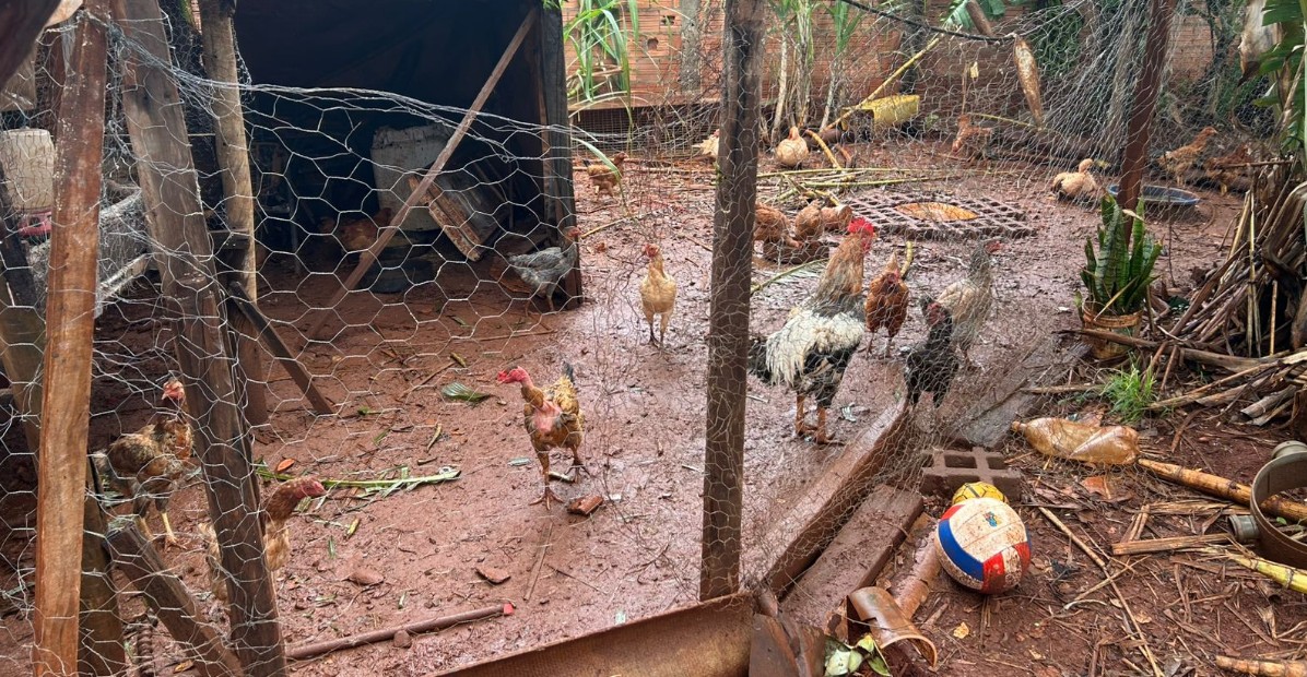 No local, os policiais constataram que porcos, galinhas e patos eram mantidos no imóvel em condições inadequadas. O forte odor incomodava moradores da região, e os dejetos dos suínos eram lançados de forma irregular na rede de esgoto, enquanto os resíduos das aves estavam espalhados pelo terreno.