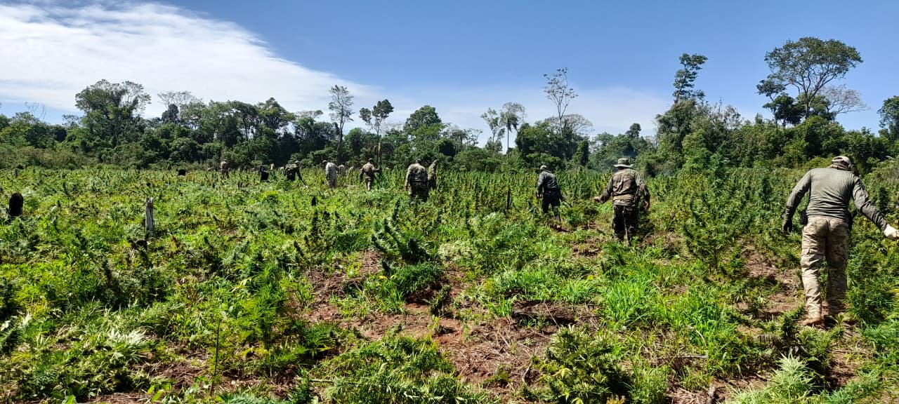 Durante os dez dias de trabalho conjunto, as forças antidrogas desmantelaram 96 acampamentos que serviam como bases logísticas para a produção e o acúmulo da droga. Além disso, as equipes táticas erradicaram 309 hectares de cultivos ilícitos, o que equivale a uma área superior a 12 parques Ñu Guasu juntos.