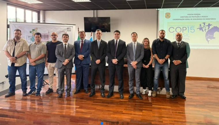 A Polícia Federal realizou, nesta sexta-feira (20), reunião de alinhamento com o efetivo que atuará na segurança da 15ª Conferência das Partes da Convenção sobre a Conservação das Espécies Migratórias de Animais Silvestres (COP15), a ser realizada em Campo Grande, de 23 a 29 de março de 2026. O encontro teve como objetivo alinhar estratégias operacionais, reforçar protocolos de atuação e integrar as equipes envolvidas na missão, garantindo alto nível de prontidão para o evento internacional.