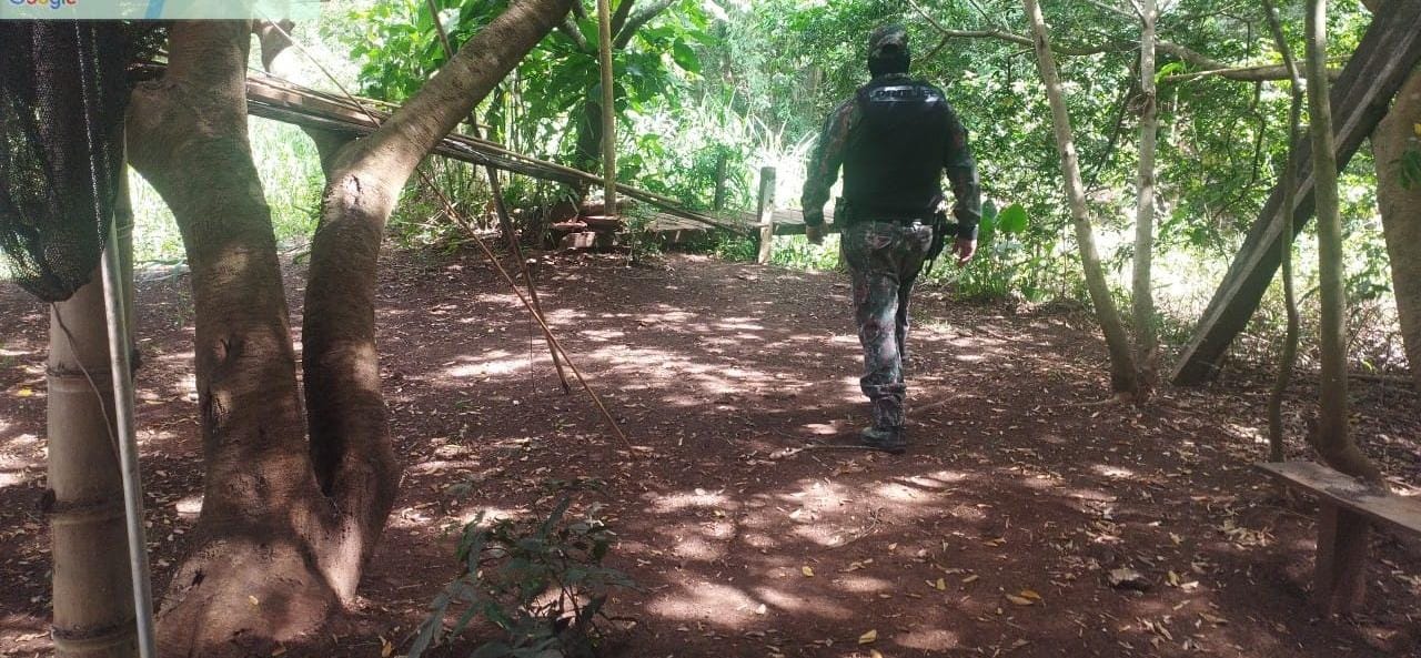 Durante patrulhamento fluvial realizado por uma guarnição do 2º Batalhão da PMA, os policiais constataram a existência de uma ilha utilizada como acampamento de pesca, com indícios claros de ocupação permanente. No local, foram encontradas estruturas fixas, como coberturas com lonas, uma churrasqueira de concreto e uma ponte de madeira, intervenções proibidas pela legislação ambiental em áreas de preservação.
