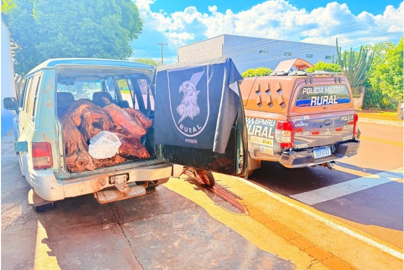 Os ladrões foram presos praticando o crime no interior da propriedade. Durante a ação, os policiais apreenderam cerca de 225 quilos de carne bovina, além de facas, chairas, mochilas, celulares, uma motocicleta de procedência estrangeira e um veículo utilizado no transporte da carne, que seria levada para comercialização no Paraguai.