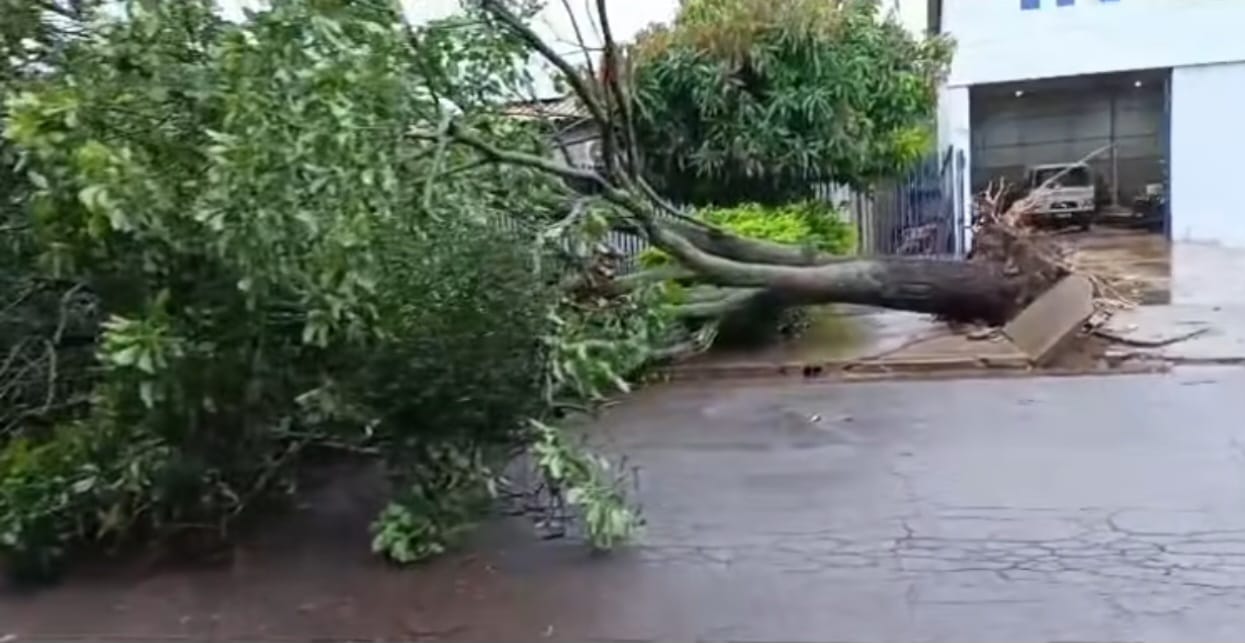Um dos pontos críticos destacados foi na Avenida Joaquim Teixeira Alves, esquina com a Rua Arroio Parão do Rio Branco, na região do Jardim Clímax, onde uma árvore de grande porte caiu, atingindo um muro e danificando a parte frontal de um veículo.