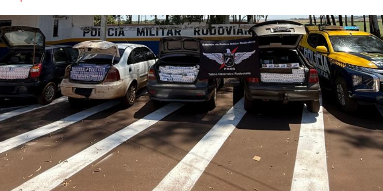 Na sexta-feira (6), por volta de 5h, a equipe do Tático Ostensivo Rodoviário (TOR) do Batalhão de Polícia Militar Rodoviária apreendeu cinco veículos carregados com mercadorias de origem estrangeira sem documentação durante fiscalização na rodovia MS-164, região de Ponta Porã. Durante a fiscalização, os policiais perceberam um comboio de veículos trafegando no sentido Ponta Porã – Maracaju. Ao receberem sinalização com ordem de parada, os condutores furaram o bloqueio policial, iniciando fuga em al6ta velocidade, sendo realizado acompanhamento tático.