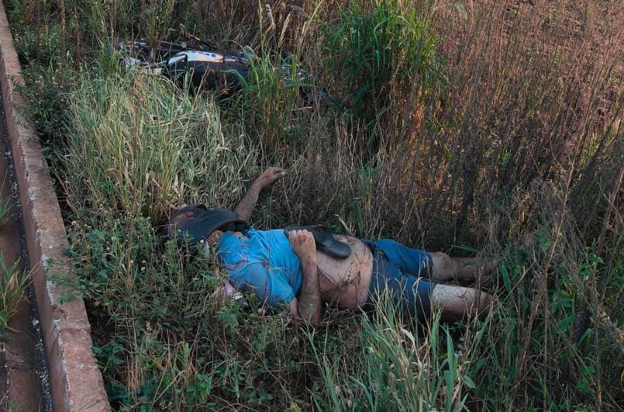 Um motociclista ainda não identificado foi encontrado caído por populares na madrugada deste domingo (8) em uma via de acesso ao Rodoanel de Ponta Porã.